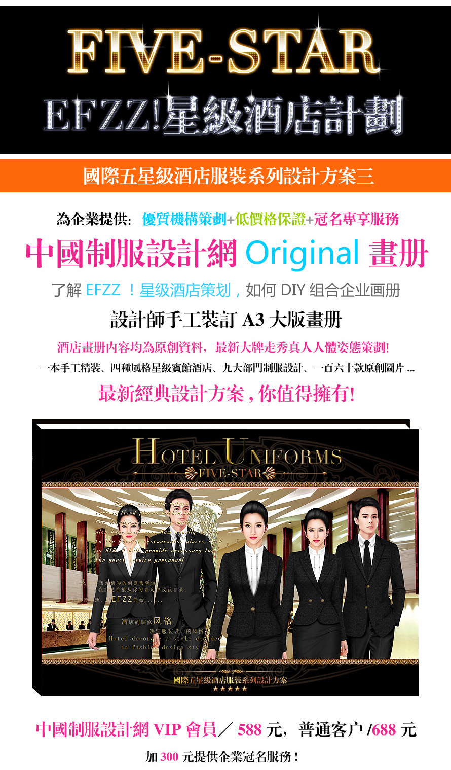 五星級酒店書籍畫冊,四套五星級酒店制服圖片排版策劃!
