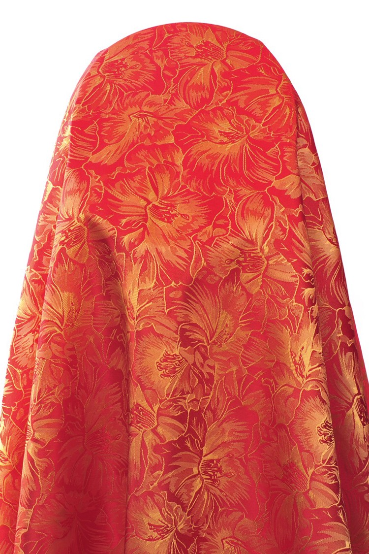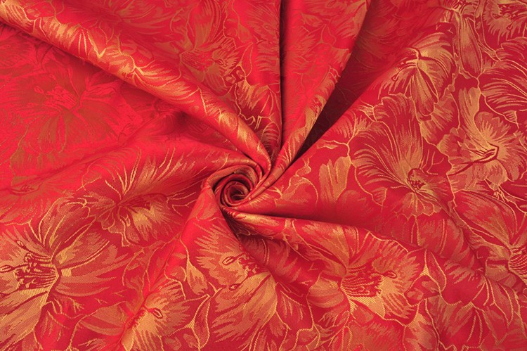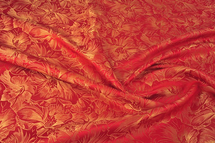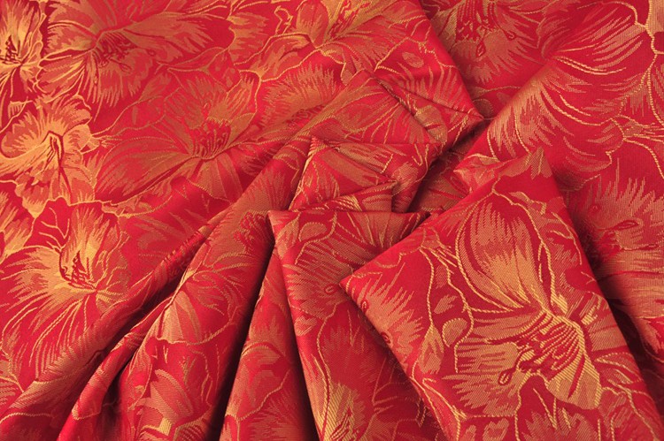 金紅色百合花酒店服裝提花布料 591-3