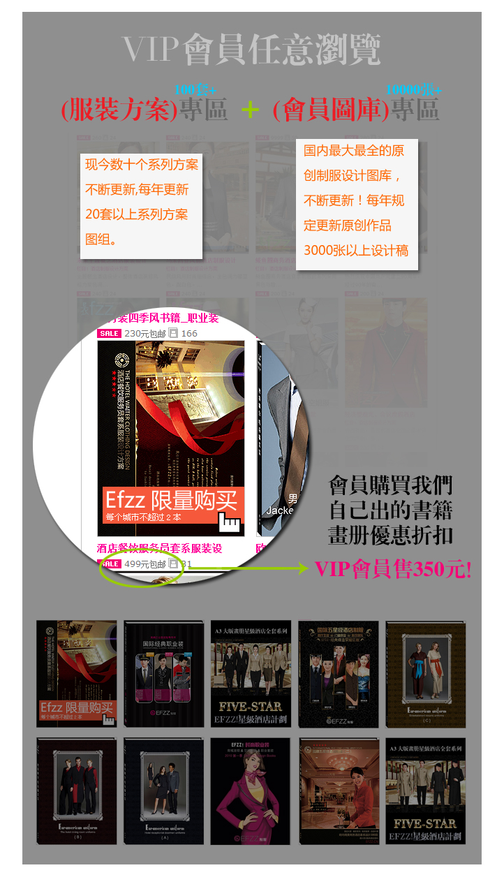 EFZZ制服設(shè)計(jì)網(wǎng)VIP會(huì)員購(gòu)買我們?cè)瓌?chuàng)書籍、畫冊(cè),快遞全國(guó)!