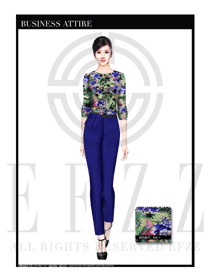 時(shí)尚白玫瑰印花女職業(yè)裝修