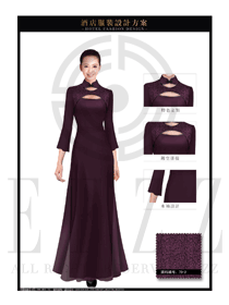 新款紫色長裙款酒店中餐迎