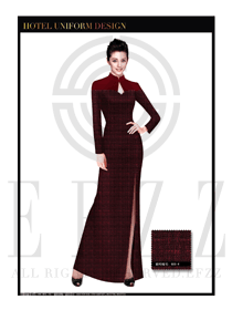 棗紅色長(zhǎng)裙款酒店中餐廳迎