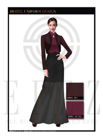 時(shí)尚棗紅色女款中餐迎賓服
