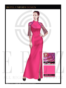 玫紅色長(zhǎng)裙款酒店中餐廳迎