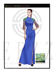 時(shí)尚藍(lán)色長(zhǎng)裙款中餐迎賓服