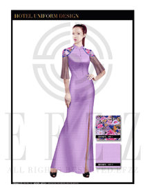 時(shí)尚粉紫色長(zhǎng)裙款中餐迎賓