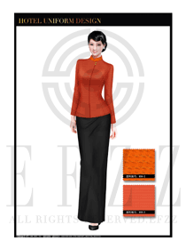 時(shí)尚橙黃色女款中餐迎賓服