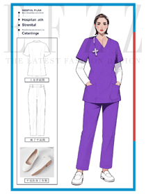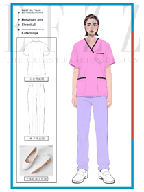 粉紫撞色醫(yī)護(hù)服:美容院