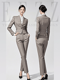 淺灰色圓領(lǐng)職業(yè)女裝正裝高